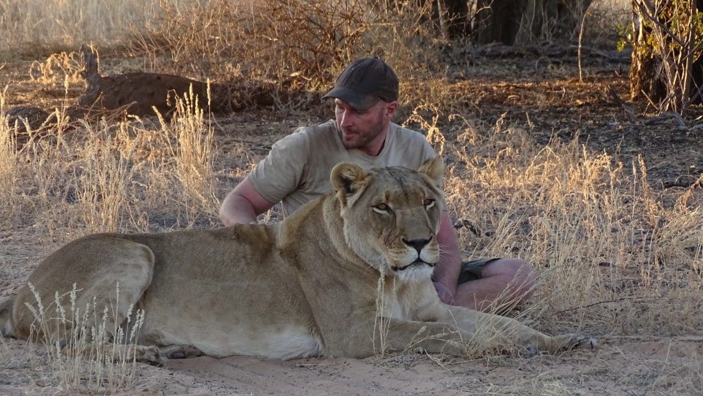 In Botswana German born Val has spent the last 13 years dedicating his life to a Lioness called Sirga. He rescued the cub as a newborn and nursed her back to health, from the brink of death. Today the pair live on a 2000 hectare reserve where they spend their days walking barefoot together and sharing Sirga’s energetic cuddles.