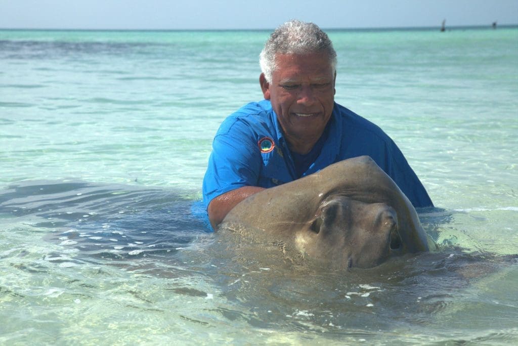In the Bahamas marine eco focussed Keith has developed a relationship with a Stingray called Hugger who really does live up to her name as she swims up his body for a wet embrace every time they are together.